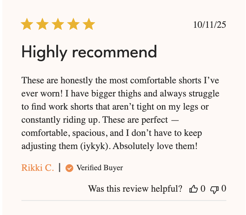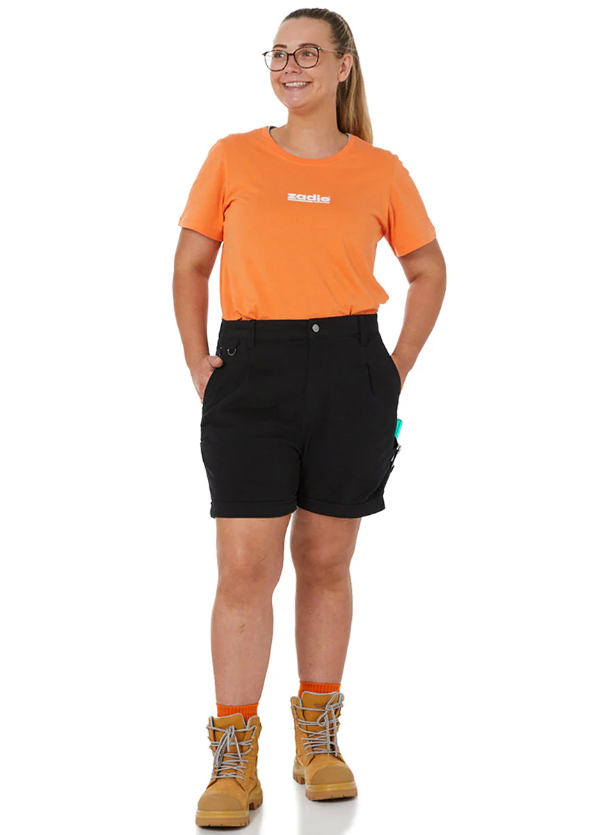 Most work shorts are built from a men’s pattern, leaving women with tight thighs or waist gaps.